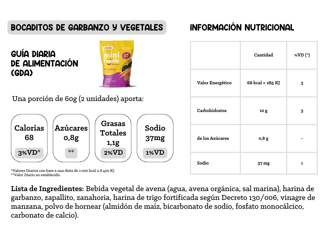 Dale a los más pequeños una opción saludable y deliciosa con nuestros Bocaditos de Garbanzo y Vegetales. Una manera fácil y divertida de incorporar más vegetales a su alimentación, sin conservantes ni aditivos innecesarios. ¡Ideales como comida principal o acompañamiento para niños más grandes!