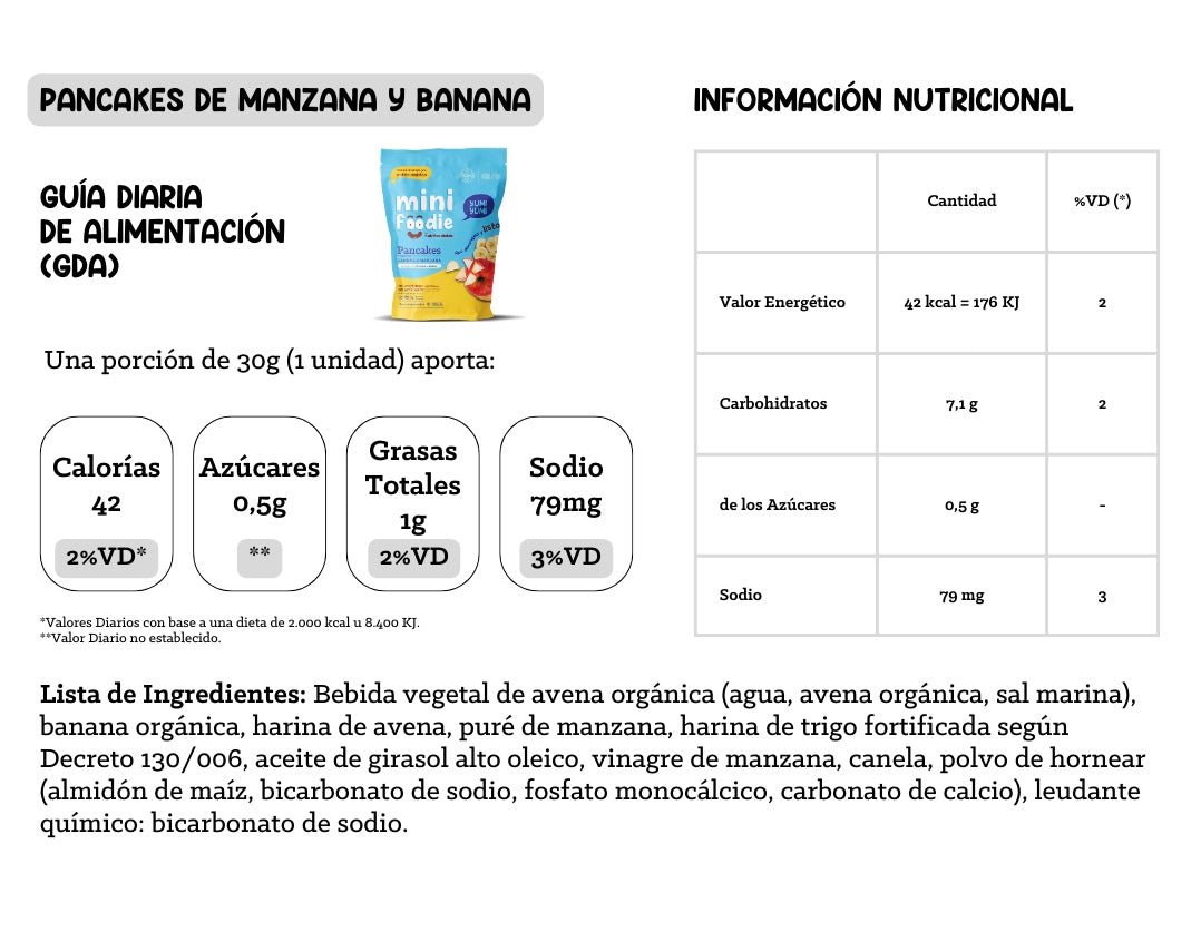 ¡Transformá las mañanas con nuestros Pancakes de Manzana y Banana! Una opción deliciosa, nutritiva y lista para disfrutar. Inspirados en el sabor casero, combinan la dulzura natural de la banana y la manzana con una textura suave y esponjosa, perfecta para los más pequeños y toda la familia.